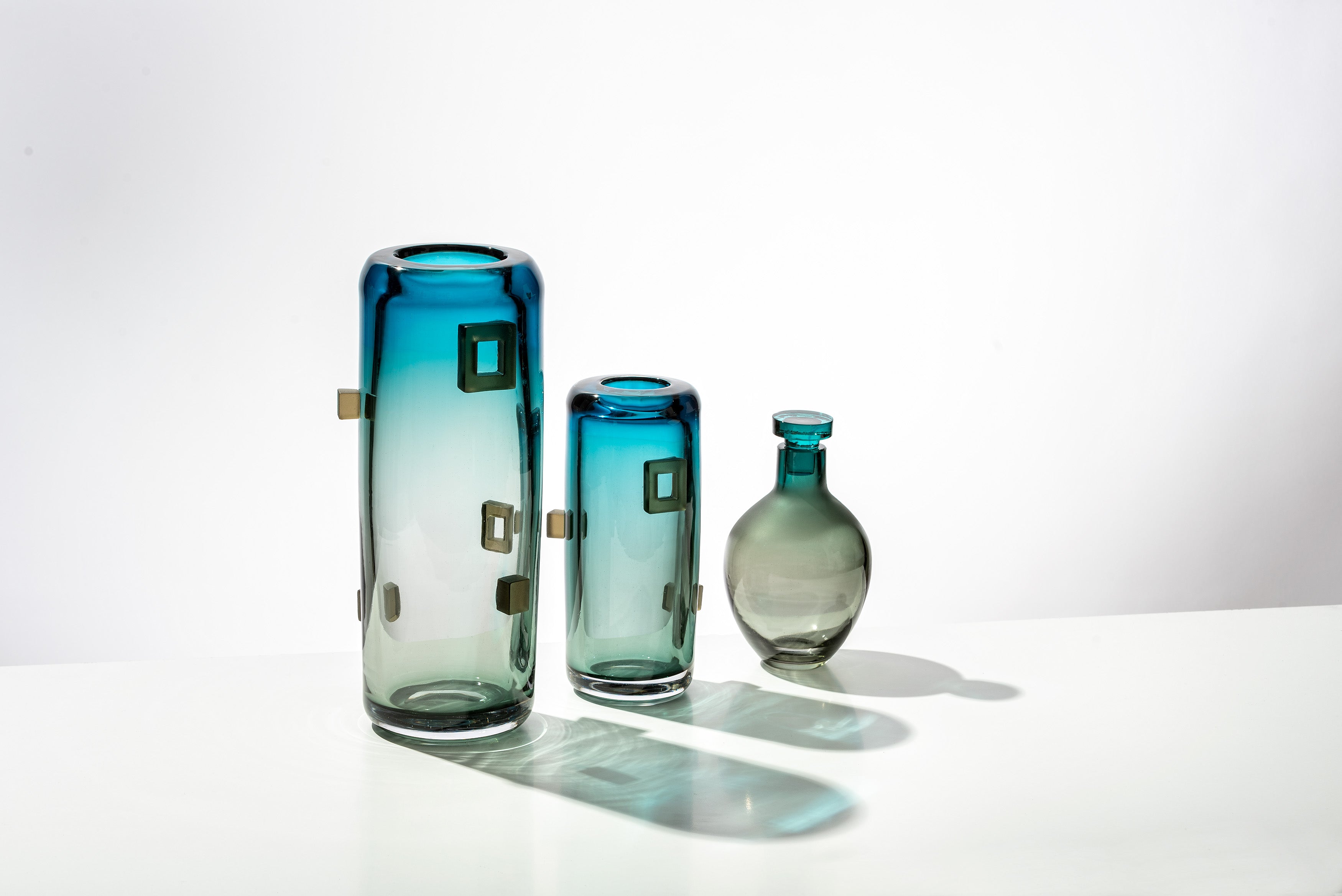 Sınırlı sayıda üretilen uzun vazolar ve likör karaflarından oluşan koleksiyon, birden fazla üretim tekniğinin aynı parçada bir araya gelmesi ile hayat buldu. Cam ve ışık birlikteliği, çeşitli boylarda vazolar da ve heykelsi karaflarda ufku anımsatan renk geçişleri ile bir renk şölenine dönüşüyor.