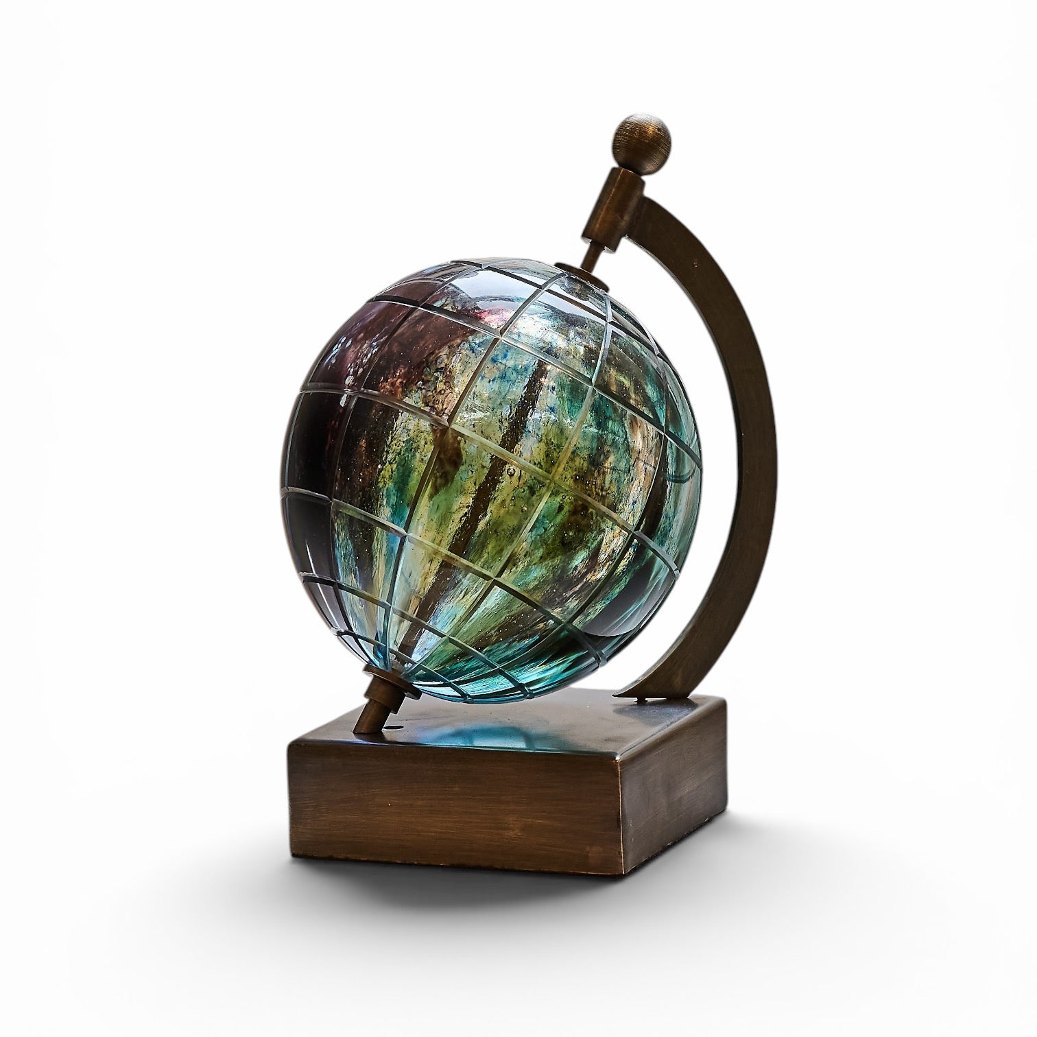 Özgün renklerde sıcak cam ve pirinç metal konstruksiyon kitap desteği obje Yükseklik 21 cm
