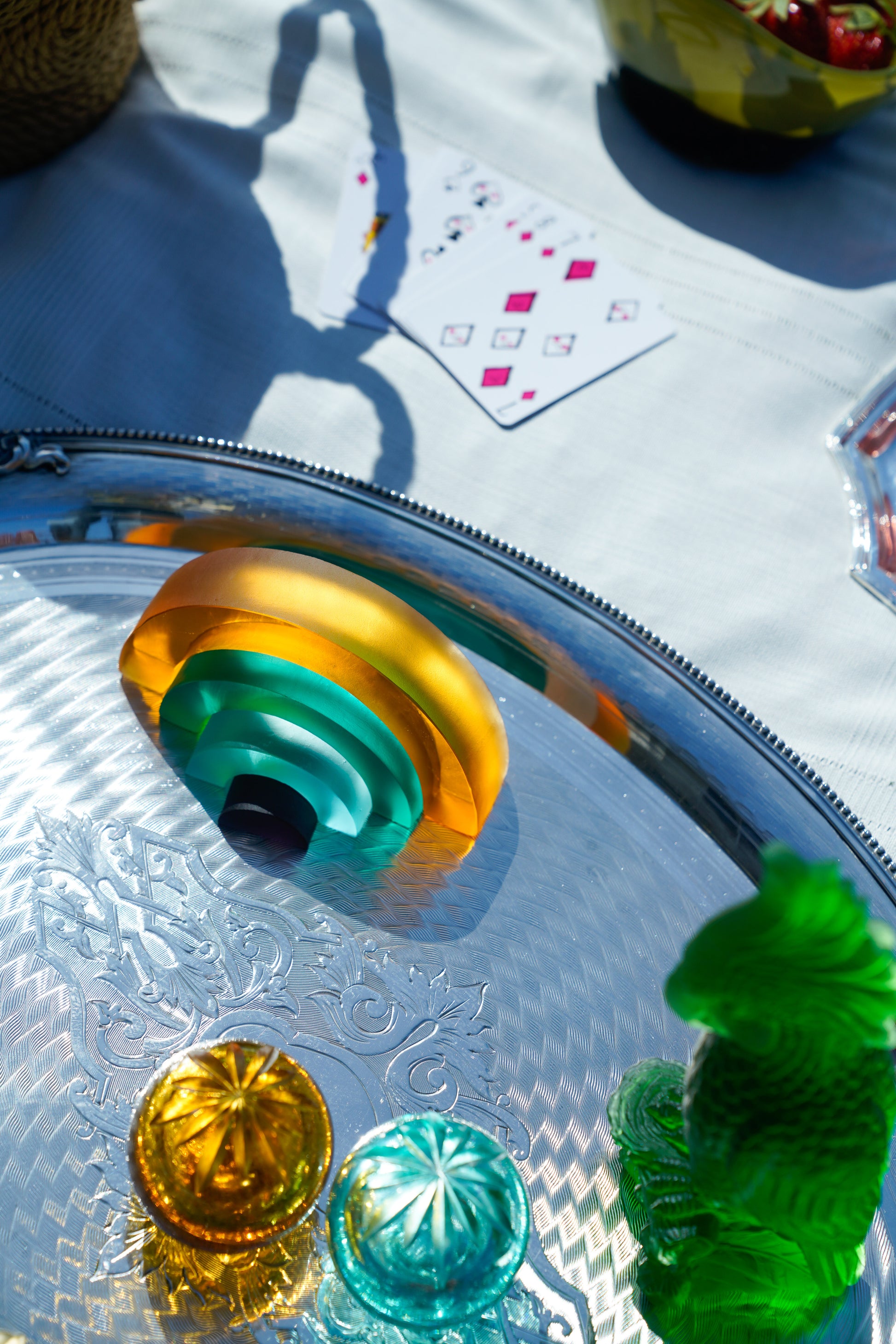 Çok renki iç içe geçen kalıpla şekilendirme cam heykel