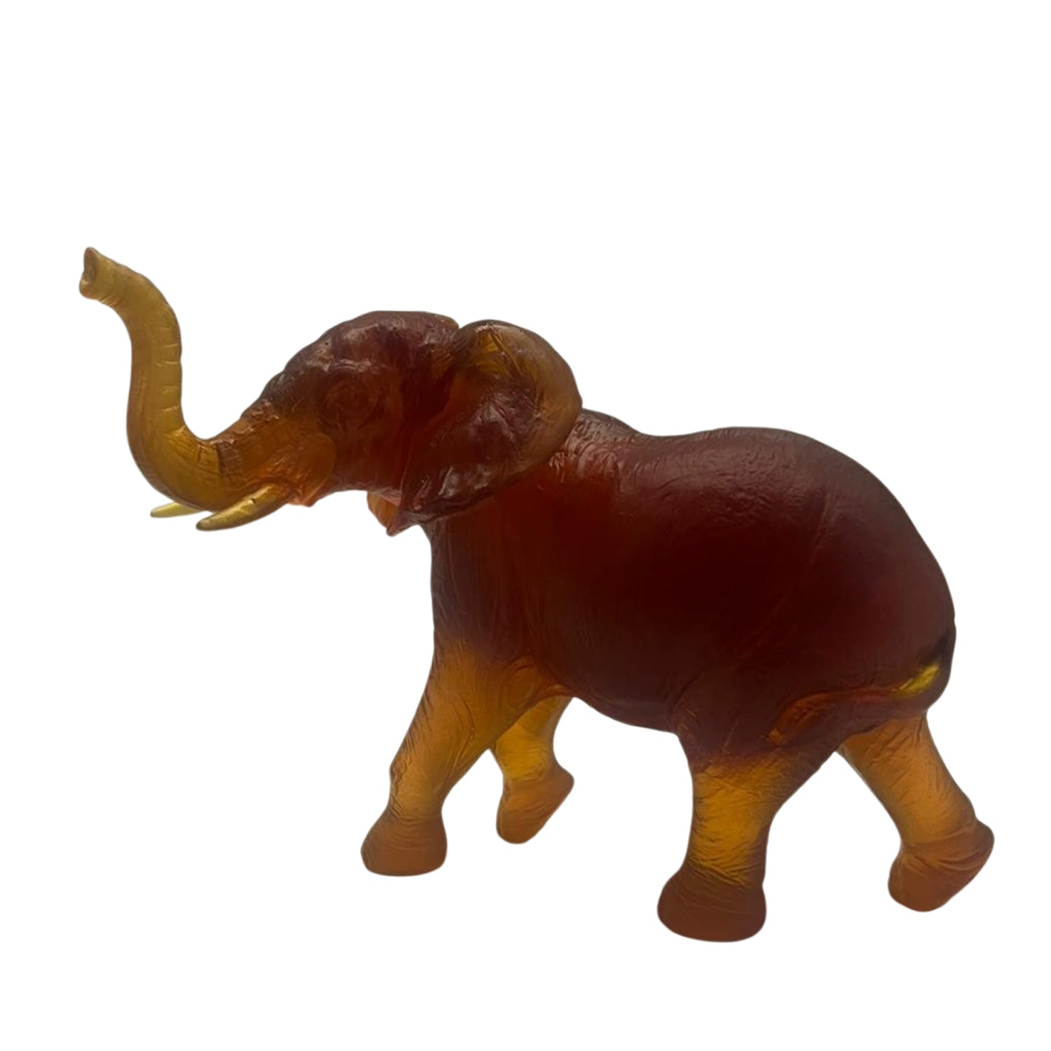 Yağ renginde kalıpla şekillendirilmiş büyük fil heykel Uzunluk 28 cm