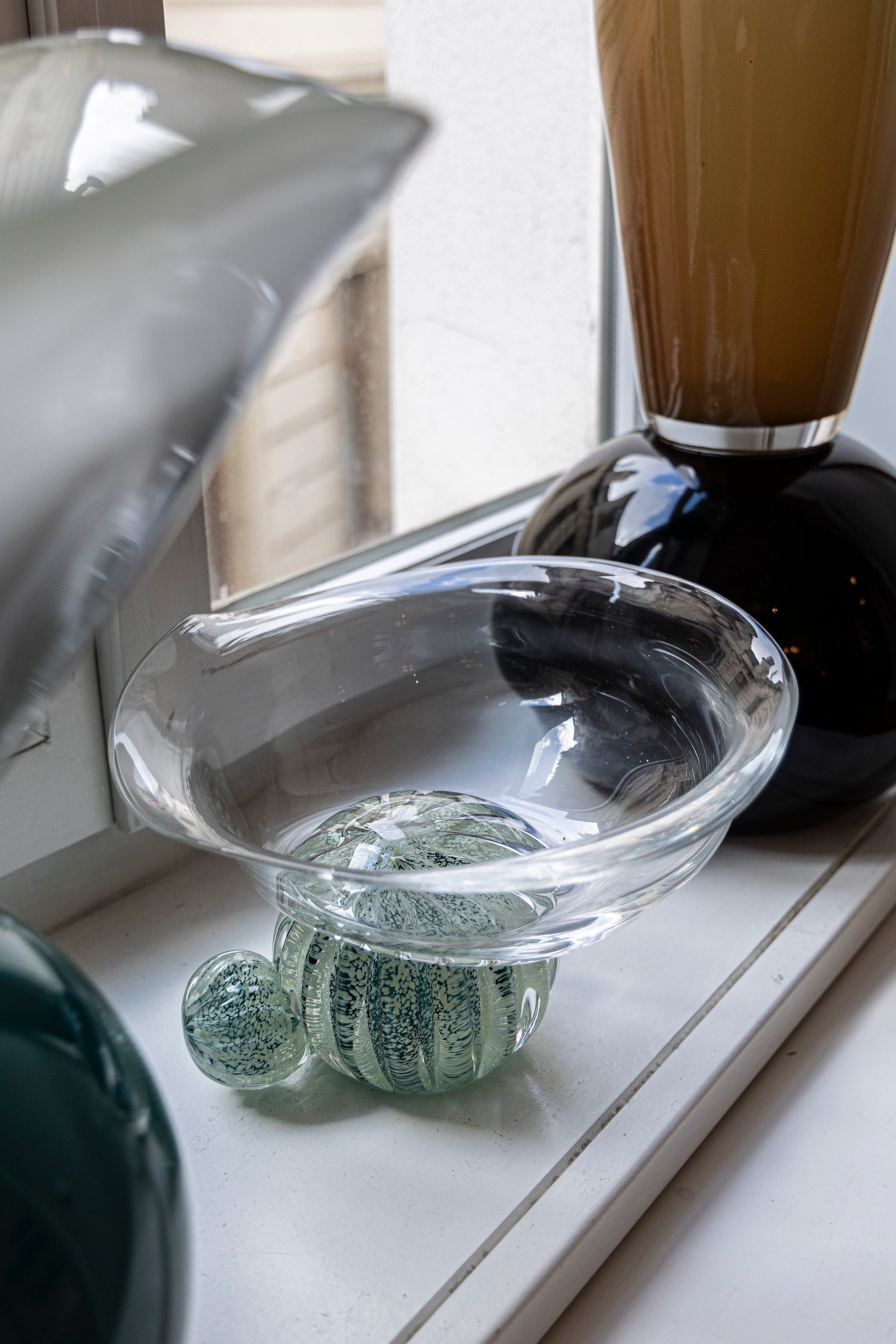Doğal görünümlü sıcak camla şekillendirilmiş saguaro kaktüs formu üzerine, üfleme sürecinde serbest biçimde yerleştirilerek oluşturulmuş özgün bir çanaktır.