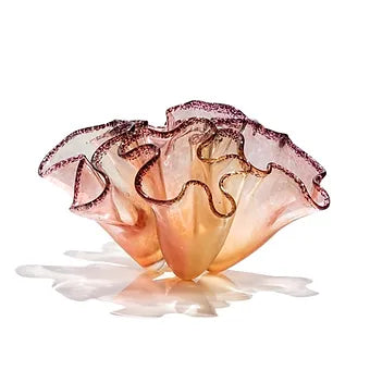 Pembe/Lila renkte sıcak cam şekillendirme tekniğinde yapılmış yaprak mercan cam heykel 22 cm genişlik 15cm yükseklik