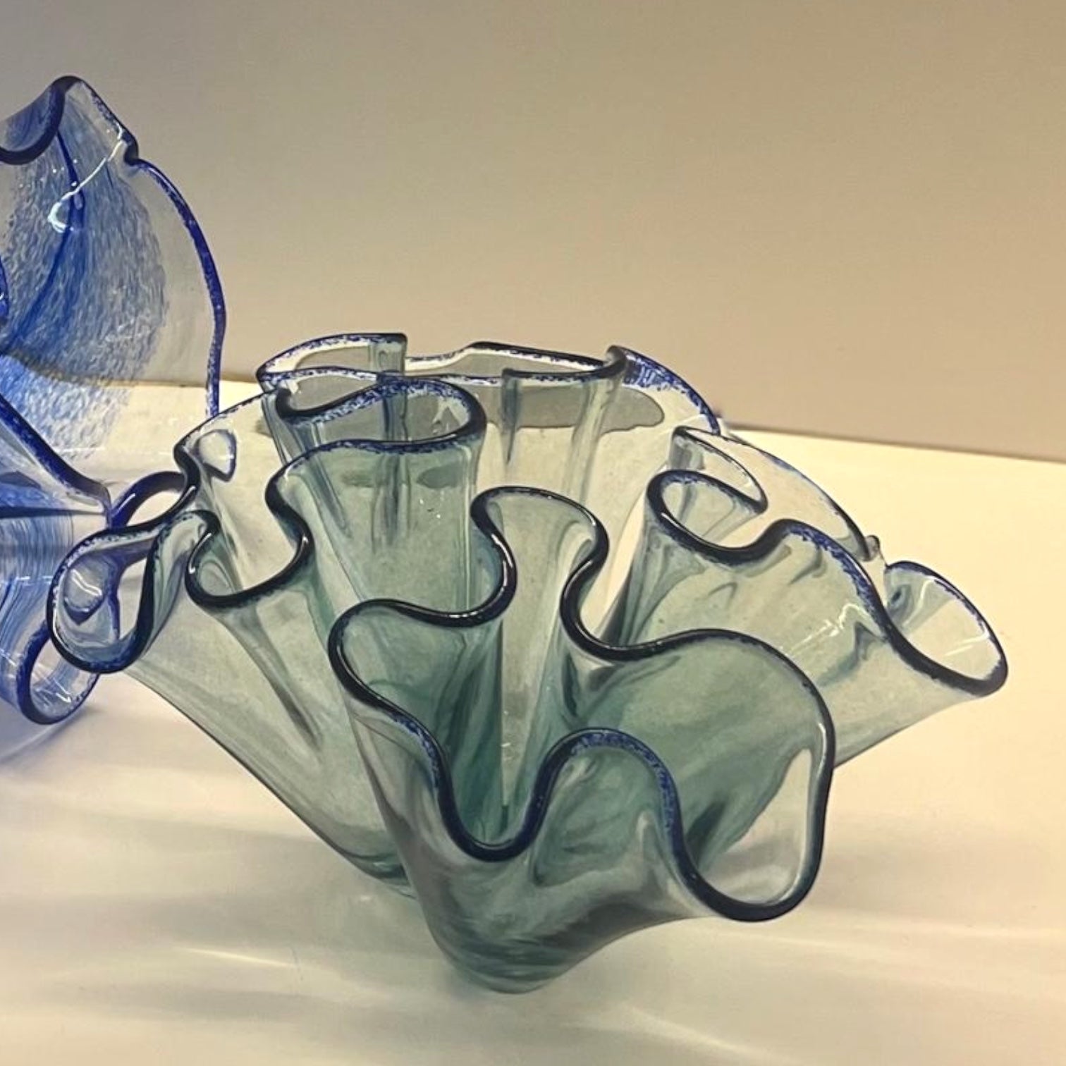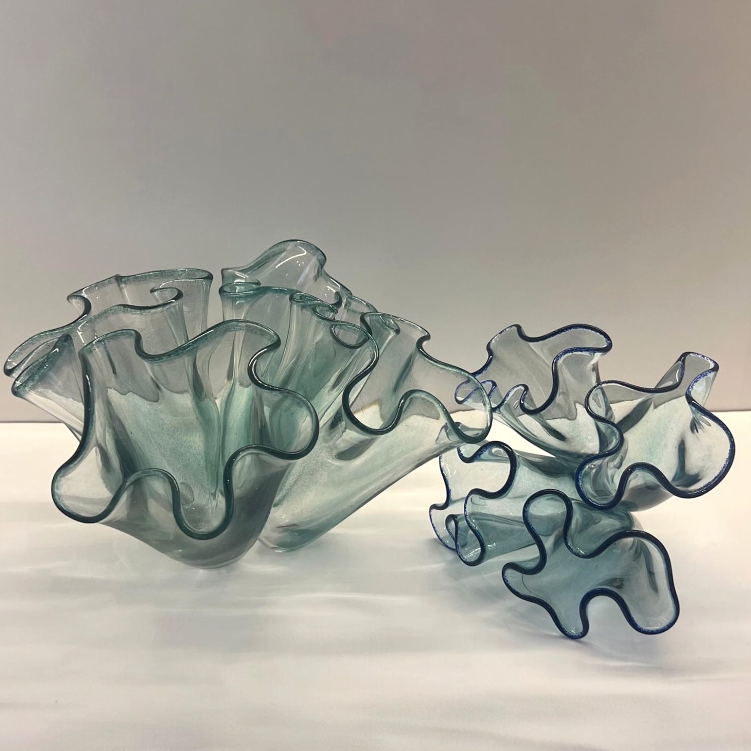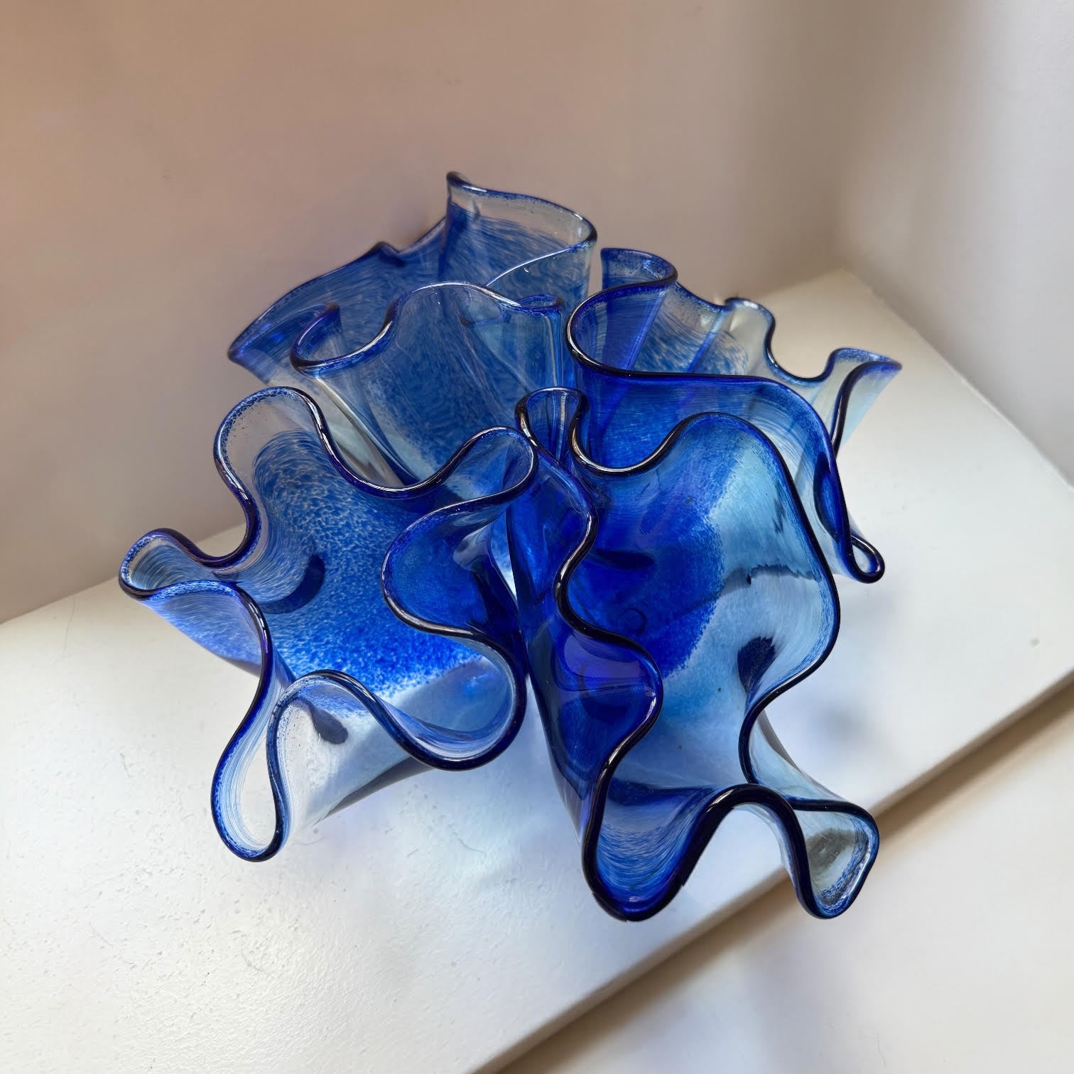 Kobalt mavi renkte sıcak cam şekillendirme tekniğinde yapılmış mercan cam heykel 22 cm genişlik 15cm yükseklik